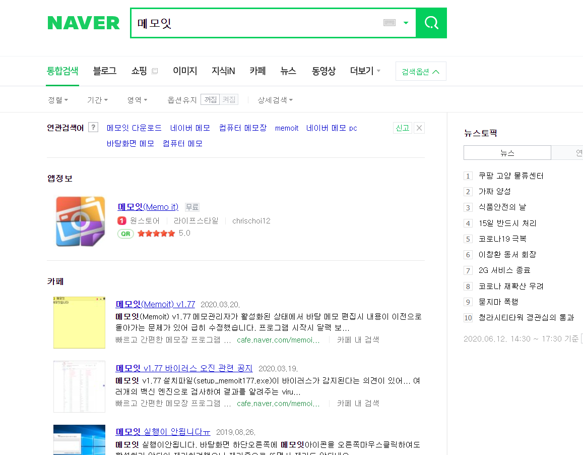 그럼 다운로드를 위해 네이버에 메모잇을 검색해볼까요? 검색해보니 가장 위에 앱정보가 먼저 뜨는군요 이 앱정보로 들어가게 되면 폰으로 다운로드를 받게 되는 것이니 스크롤을 조금 더 내려주세요 근데 폰에서도 메모잇을 쓸필요가 있나 궁금해지긴 하네요 사실 제가 전혀 쓰질 않거든요