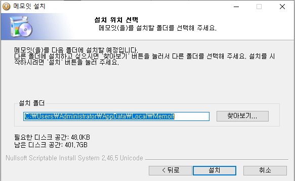 메모잇 설치라는 문구와 함께 사용권 계약이 나온답니다 상당히 재밌는 문구가 눈에 띄네요 개인 가정 회사 기업 학교 관공서 지구 동물 외계인 누구나 제한 없이 사용 및 배포할 수 있답니다 외계인까지 고려한 메모잇이었네요 외계인들이 한글을 아나봐요 무튼 별 불만이 없기때문에 바로 동의함을 눌러줍니다